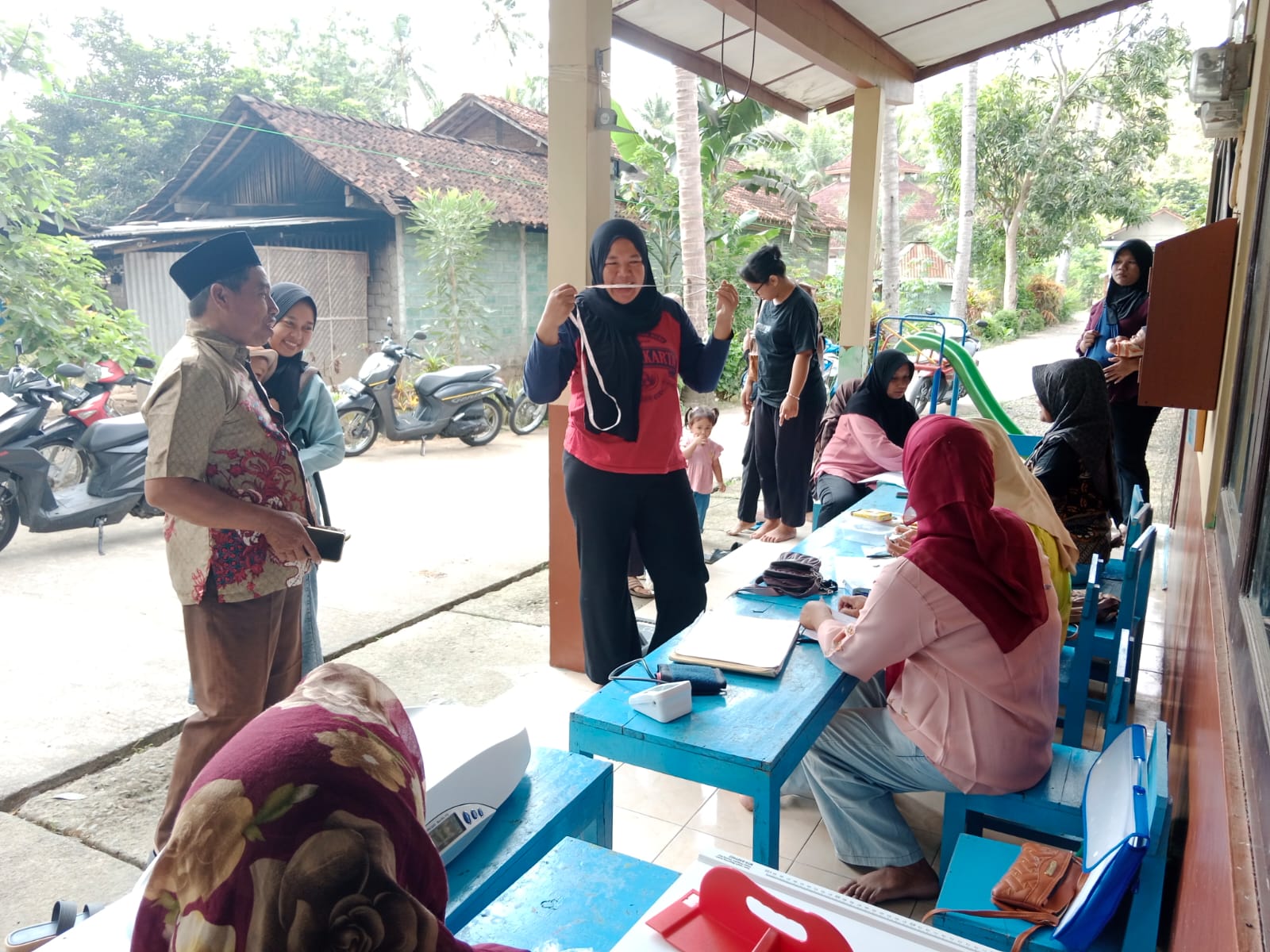 Mendampingi ibu kader melaksanakan kegiatan yandu lansia tensi, bb dll digedung PAUD Ekarini Secang