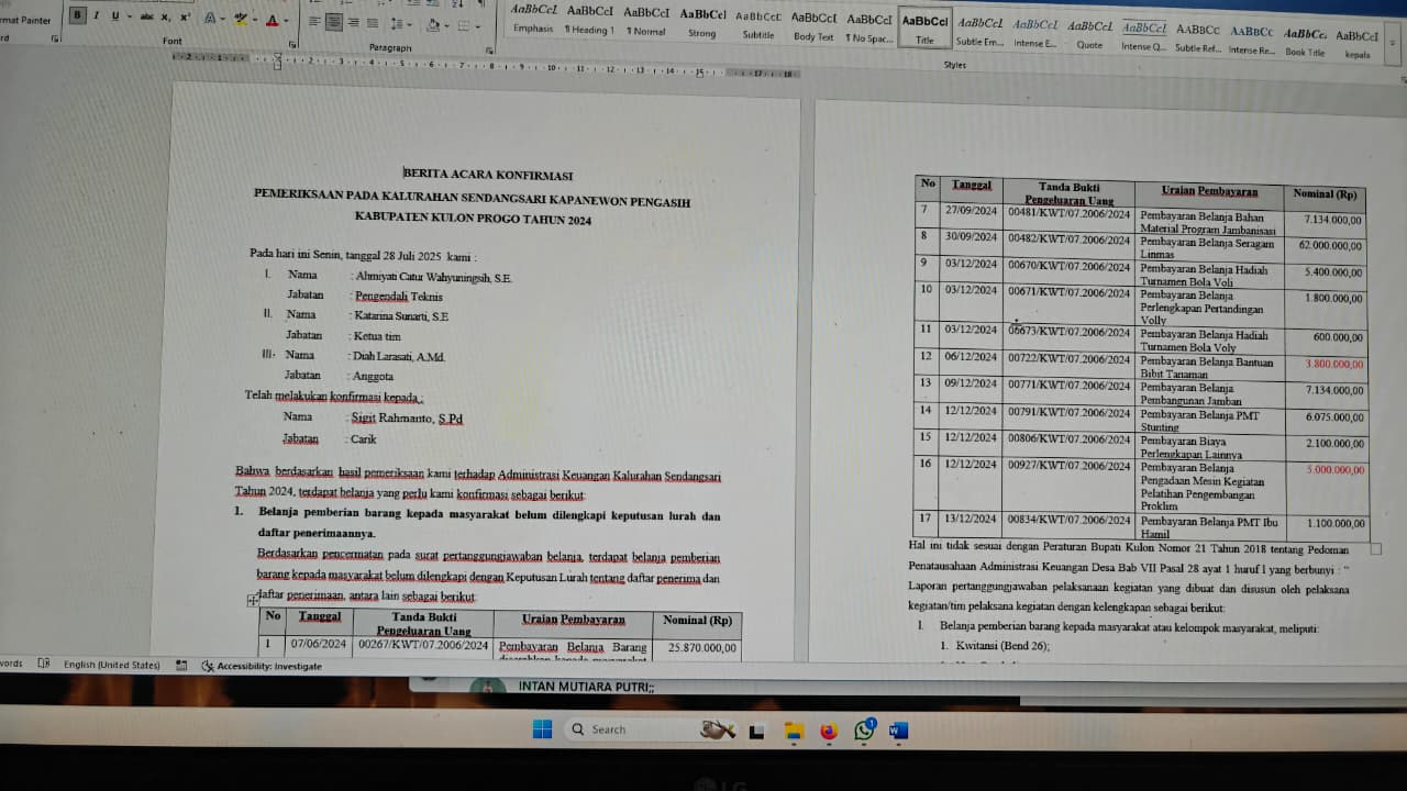 Verifikasi dokumen perkal perubahan kedua tentang APBKal 2025