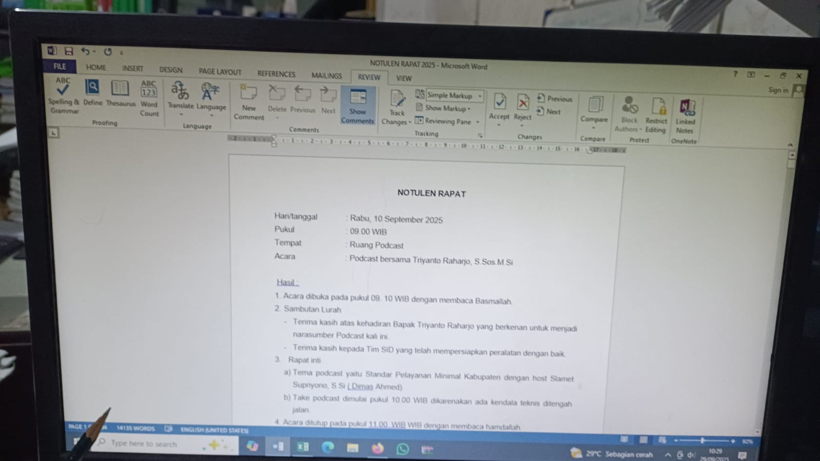 Persiapan podcast dengan narsum Ir. Tri Raharja, Staf Ahli Bupati