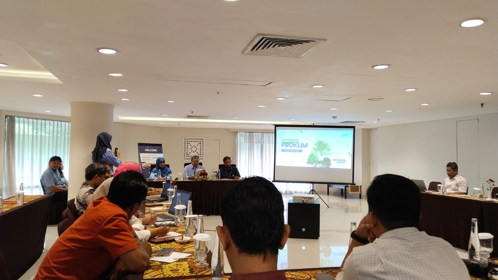 Mendengarkan pemaparan materi : diy menuju proklim lestari oleh Dr sugiatmo shut Msc di griya kresna hotel santika yogyakarta